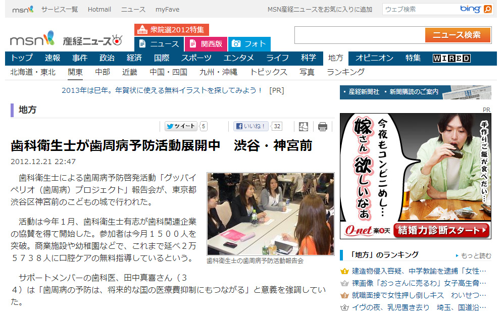 歯周病予防デーに大分県で行われたグッペリが紹介されました。
